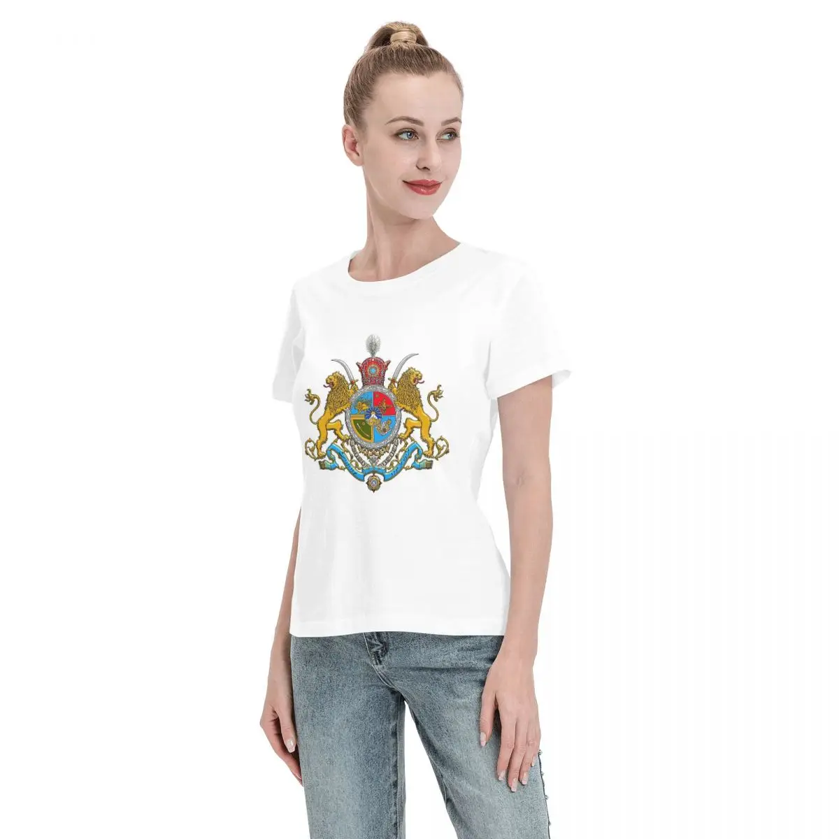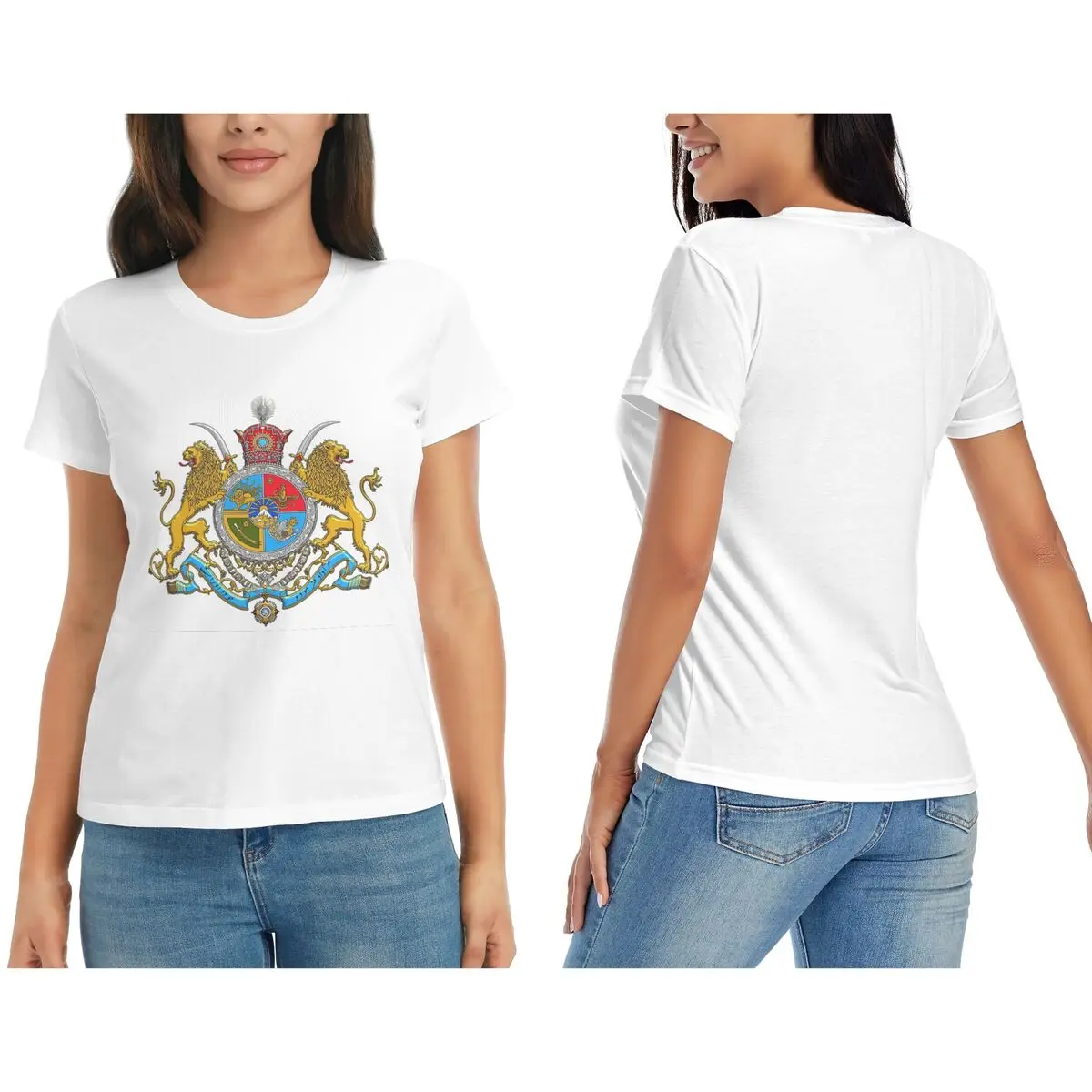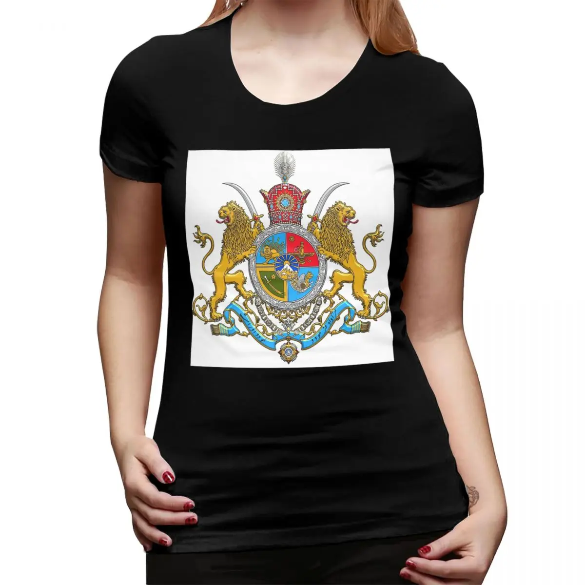 Iran Flag Emblem Persia Sun Lion T-Shirt for Women Crew Neck Streetwear T Shirts Women's Short Sleeve Summer Clothes Tops