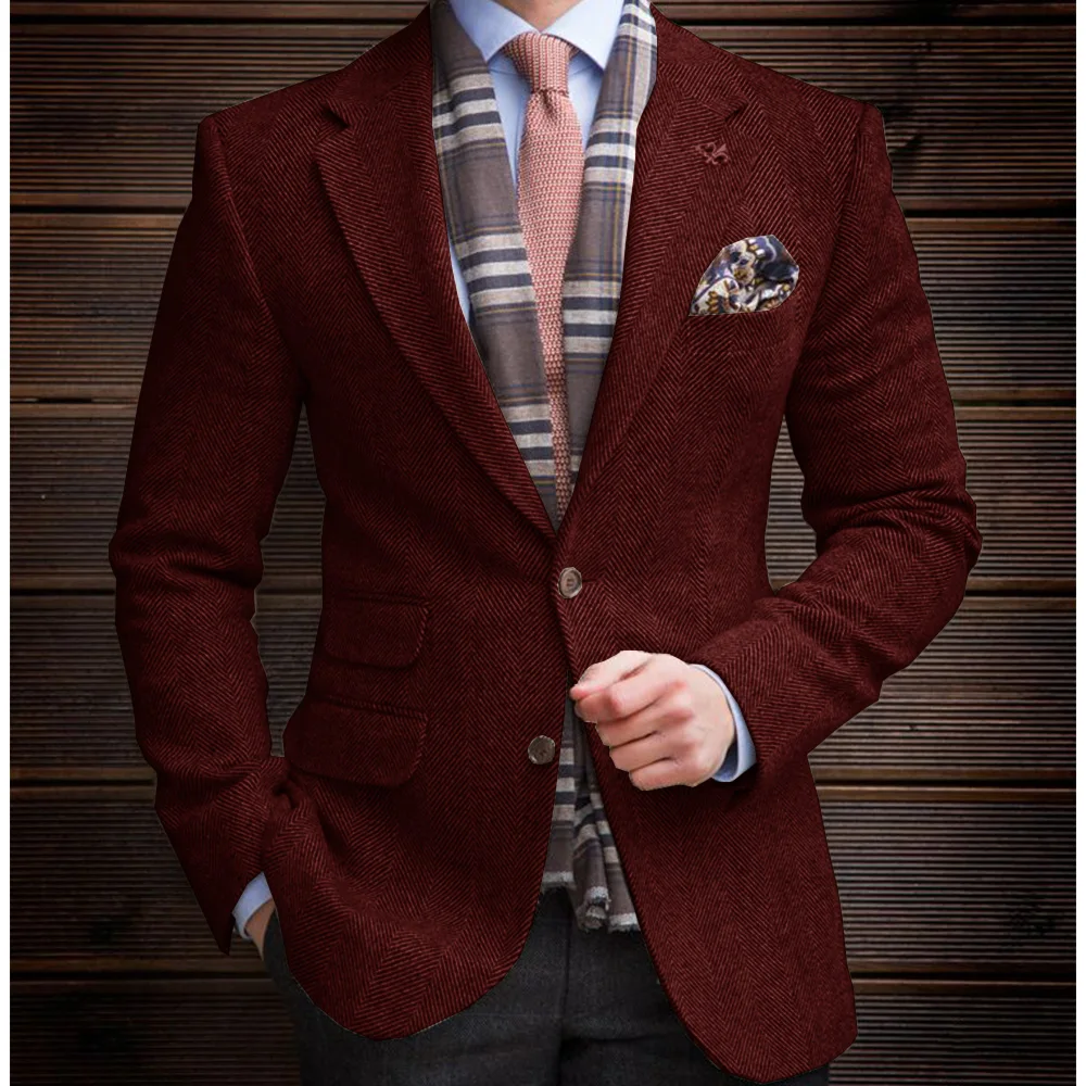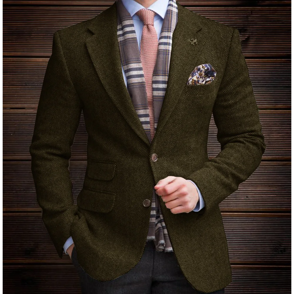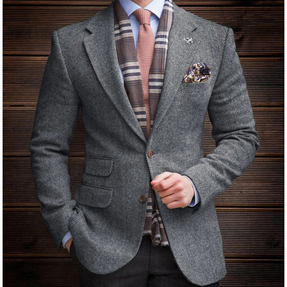 Mens Herringbone Suit Jacket Single Breasted Notch Lapel Slim Fit Blazer Three Pockets Casual Business Formal Coat Elegant Comfo