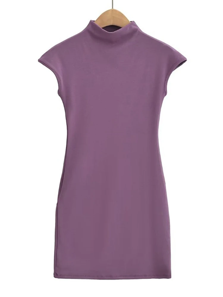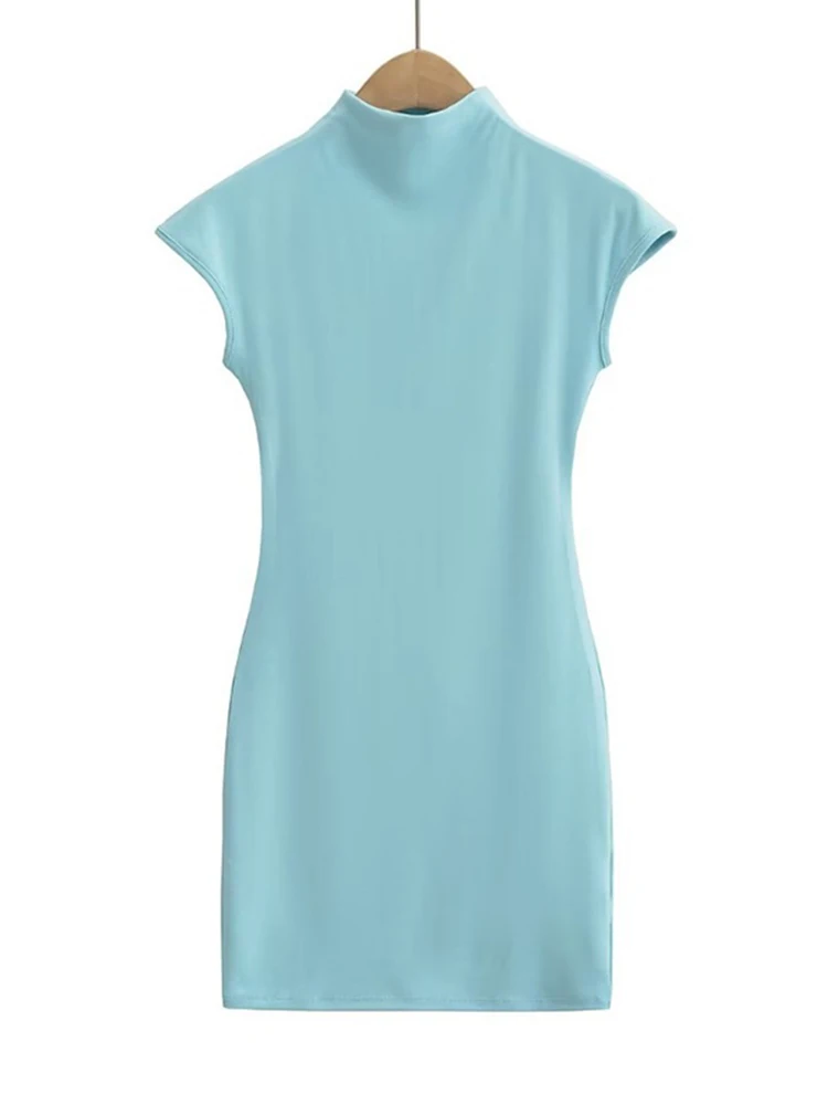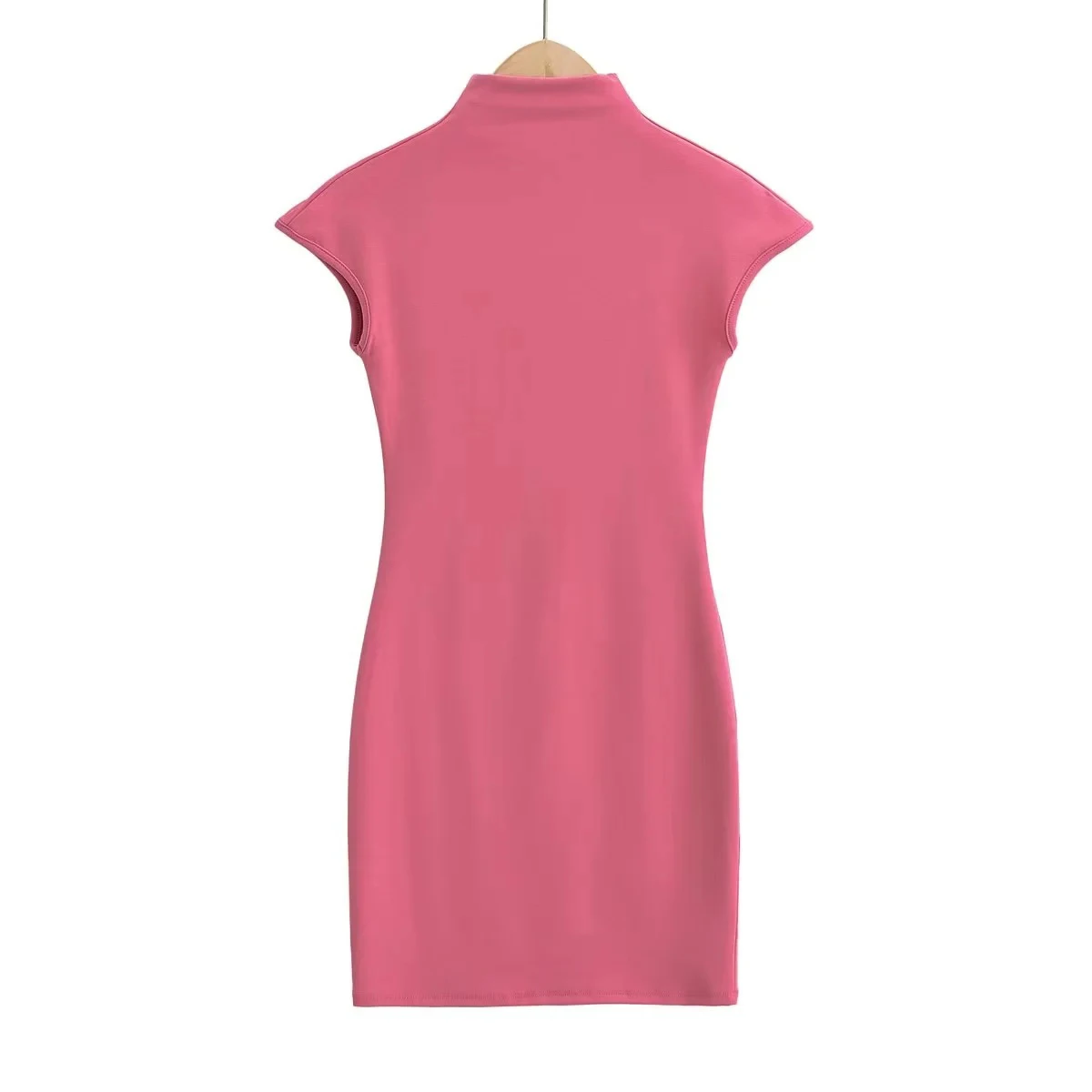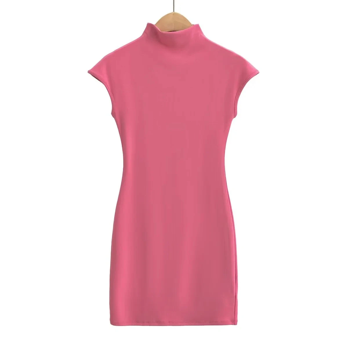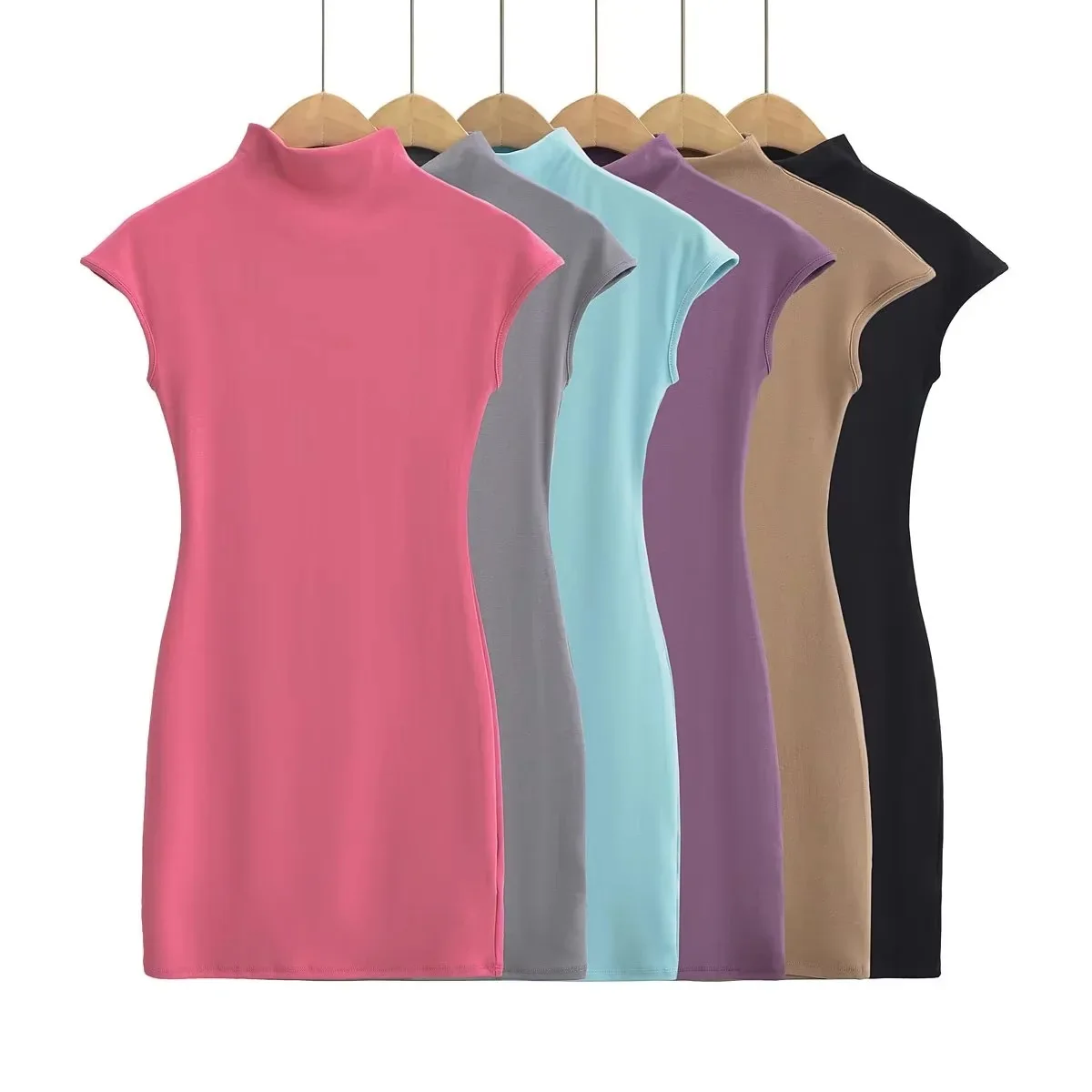 Home/Brand Fashion/Mini dresses for women 2024 Summer knitted dress sexy vintage clothes black dresses short sleeve turtleneck pink dress bodycon