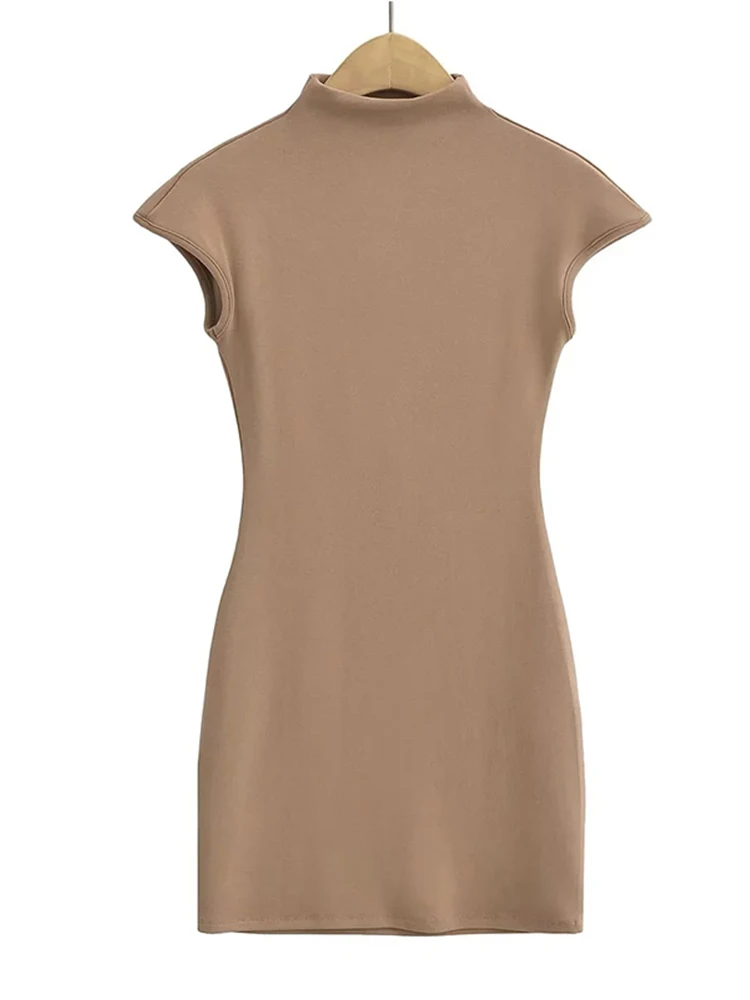 Mini dresses for women 2024 Summer knitted dress sexy vintage clothes black dresses short sleeve turtleneck pink dress bodycon