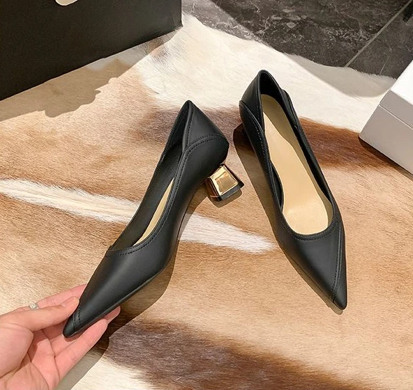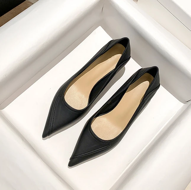 Women's Summer Footwear Formal Black Shoes for Woman 2025 Office Pointed Toe White Korean Style 39 Vacation Young Popular Casual