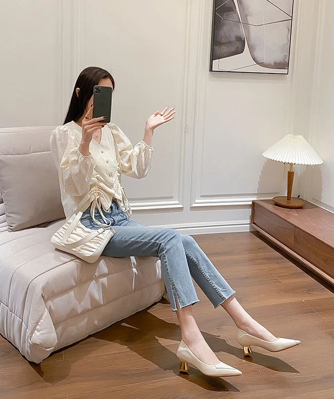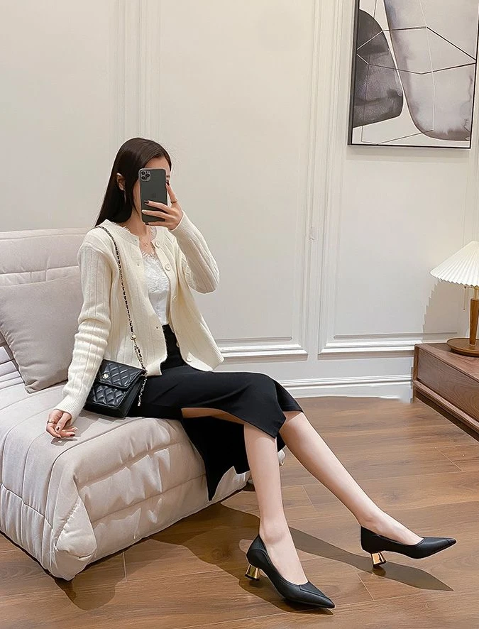 Home/Accessories & Shoes/Women's Summer Footwear Formal Black Shoes for Woman 2025 Office Pointed Toe White Korean Style 39 Vacation Young Popular Casual