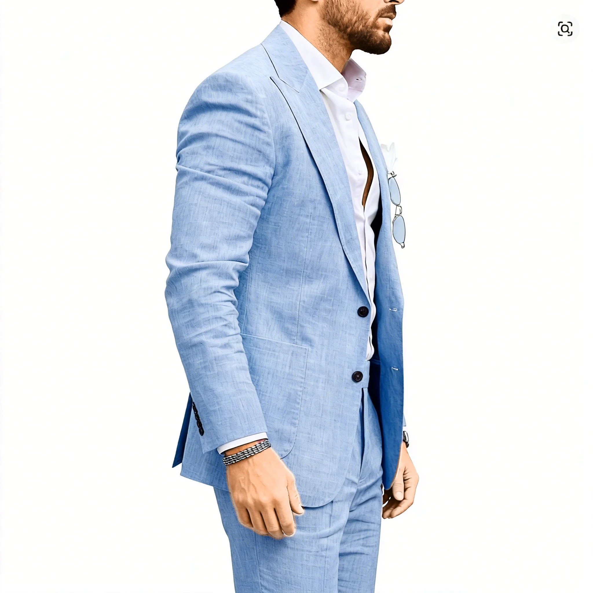 Mens Linen Suit for Beach Wedding Slim Fit 2 Piece Wedding Tuxedo for Men Casual Linen Suit Prom Party Suit