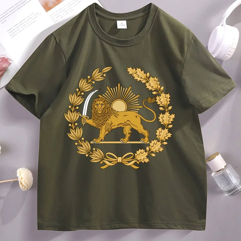 Iran T-Shirt Lion and Sun Persian Pride T Shirt Iran Map Unisex Iranian Apparel Cotton Funny T-Shirts O Neck Tee Shirt