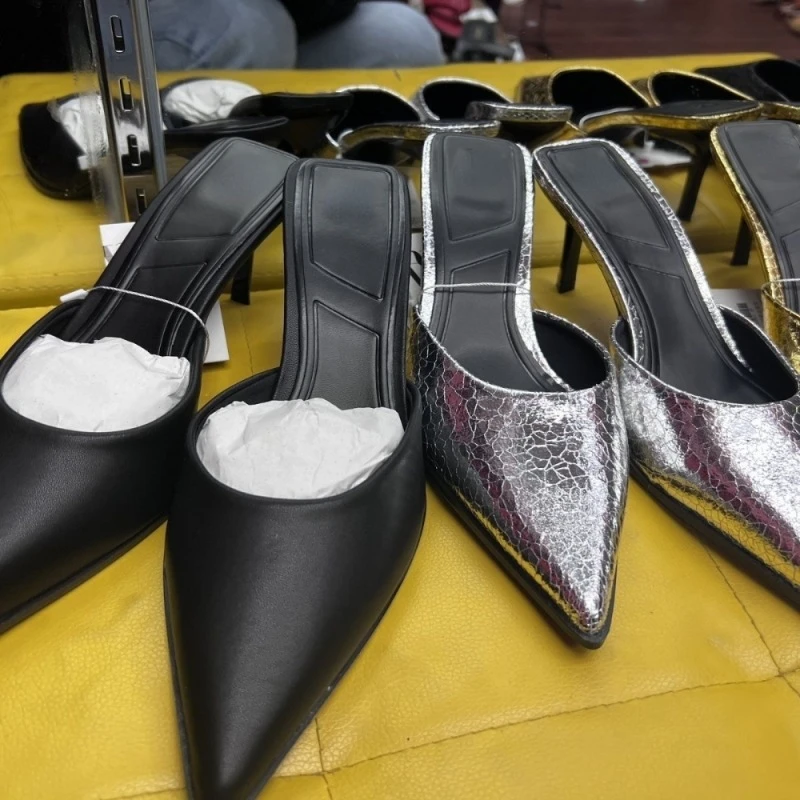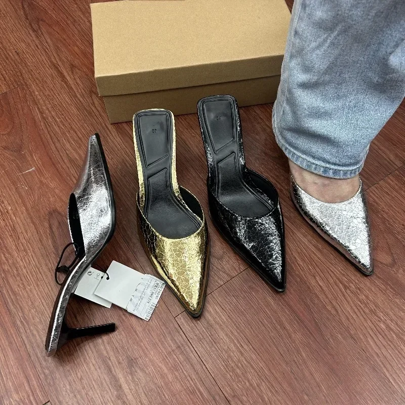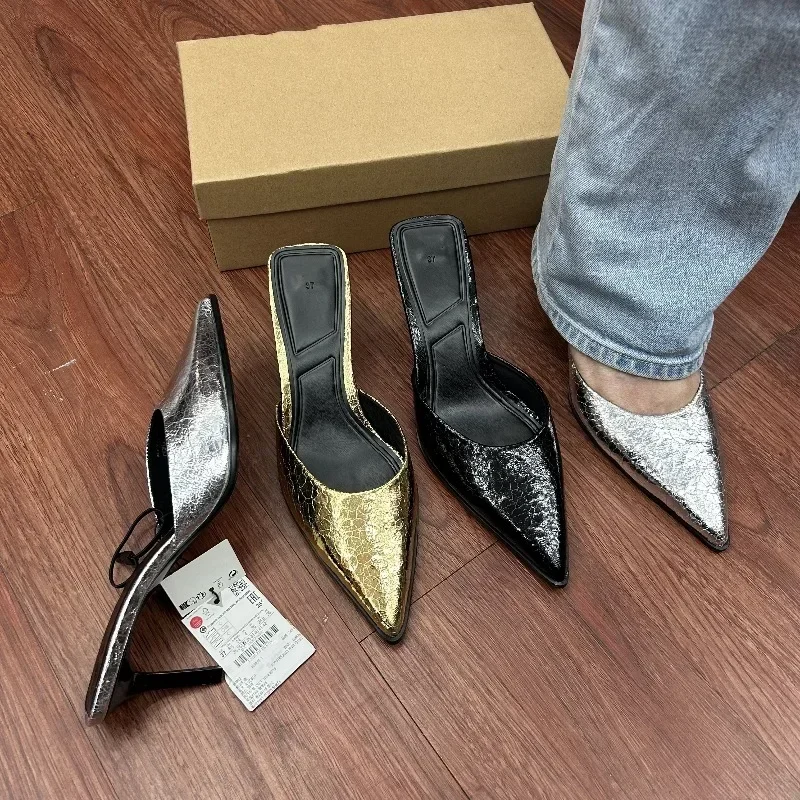 Home/Accessories & Shoes/High Heels Women Sandals Sexy Pointed Toe Ladies Stilettos Footwear 2025 Summer Party Fashion Female Mules Shoes Plus Size 42