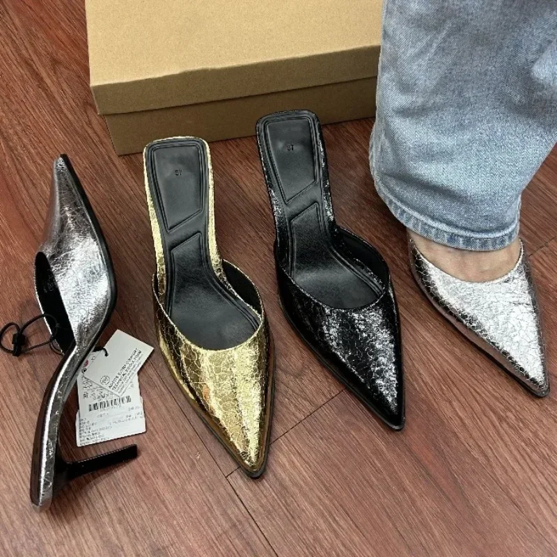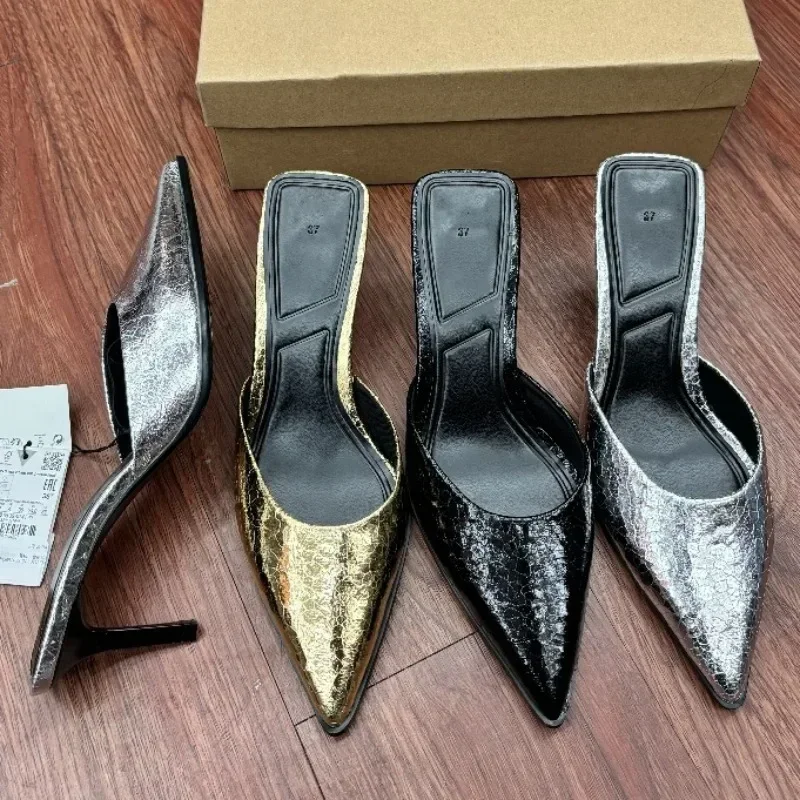 High Heels Women Sandals Sexy Pointed Toe Ladies Stilettos Footwear 2025 Summer Party Fashion Female Mules Shoes Plus Size 42