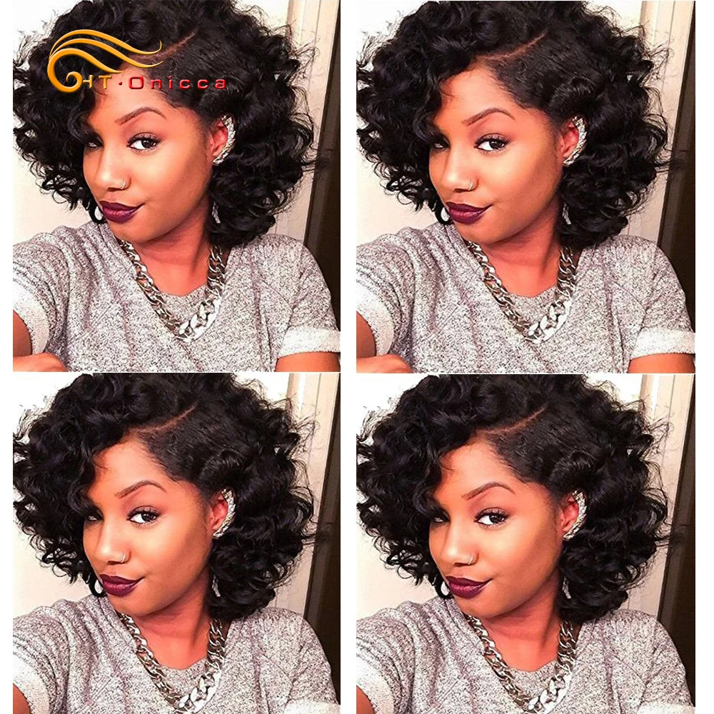 Brazilian Human Hair Wigs Short Curly Pixie Cut Wig for Black Women Machine Made Cap Pre Plucked Layered Curly Wig Ready to Wear