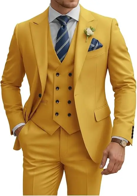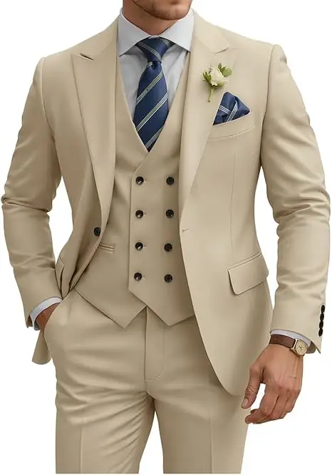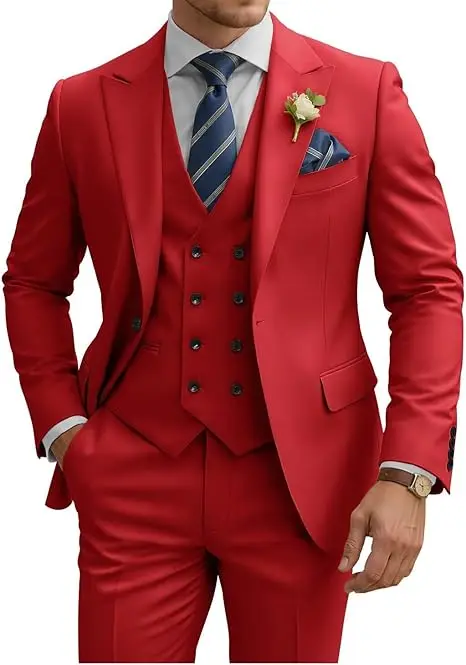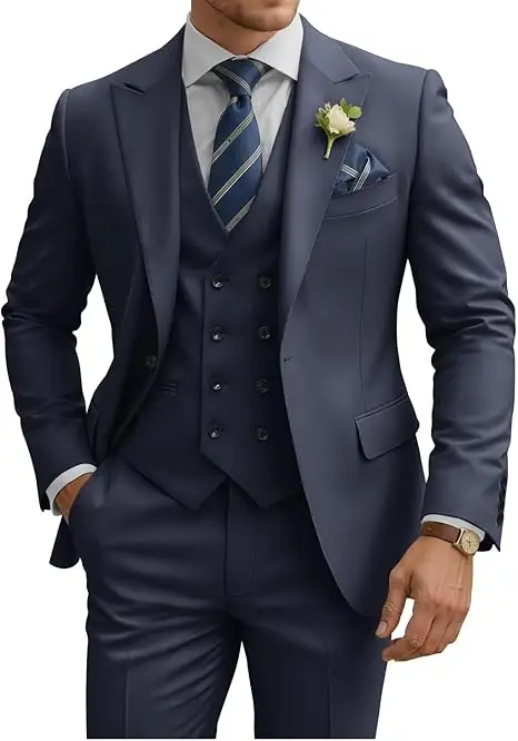 Mens Suit 3 Piece Slim Fit Suits for Men Double Breasted Suit Wedding Prom Suits Formal Business Dinner