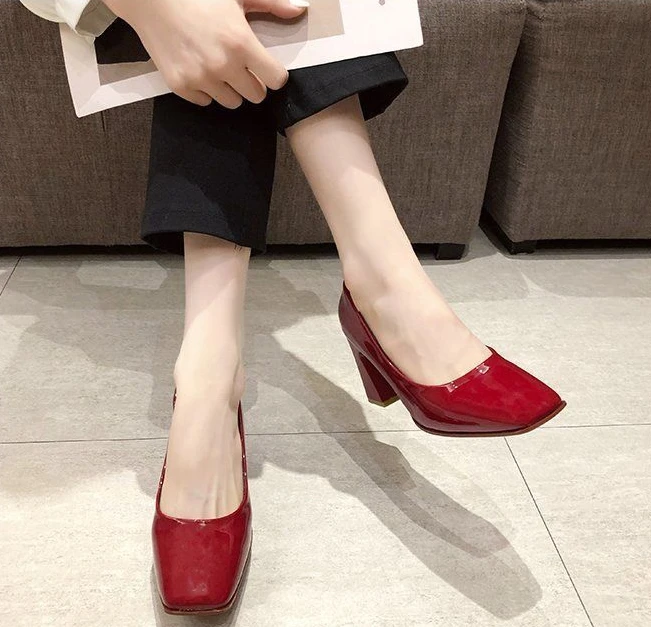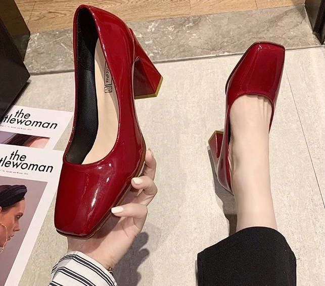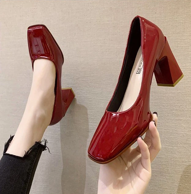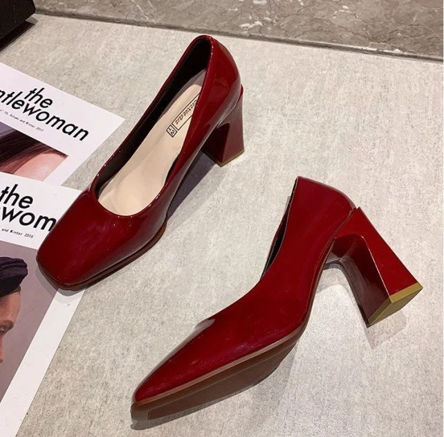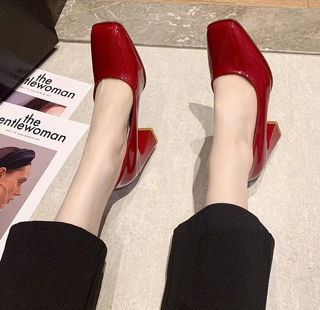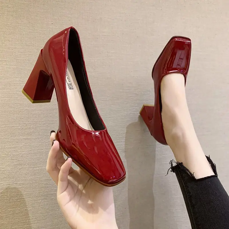Ladies Summer Footwear High Heels Shoes for Women 2025 on Heeled Pumps Office Red Square Toe Chic Point Popular Elegant Dress 39