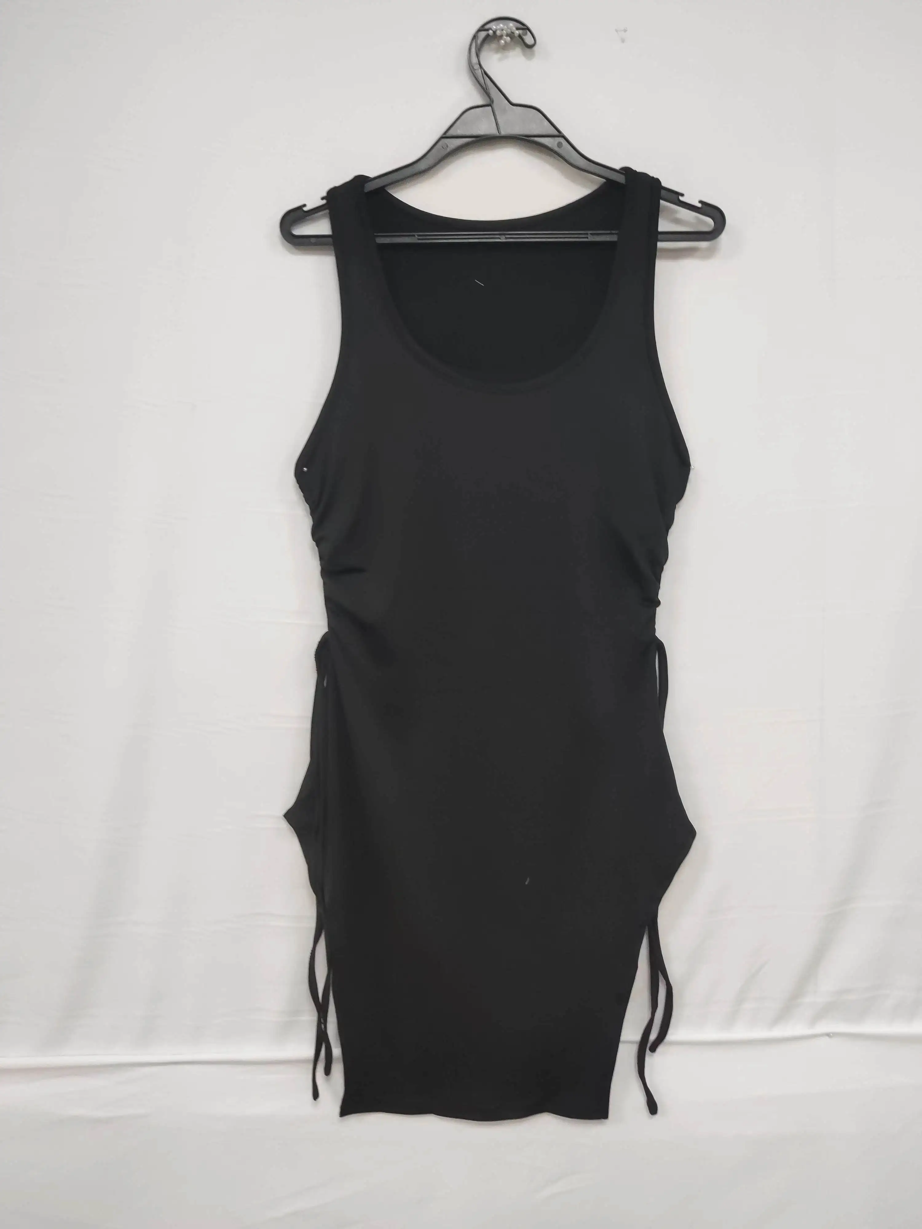 Home/Brand Fashion/Mini Dress Spring Summer Women Black Sleeveless Round Neck Ruched Side Bodycon Sexy Chic Date Party Dress
