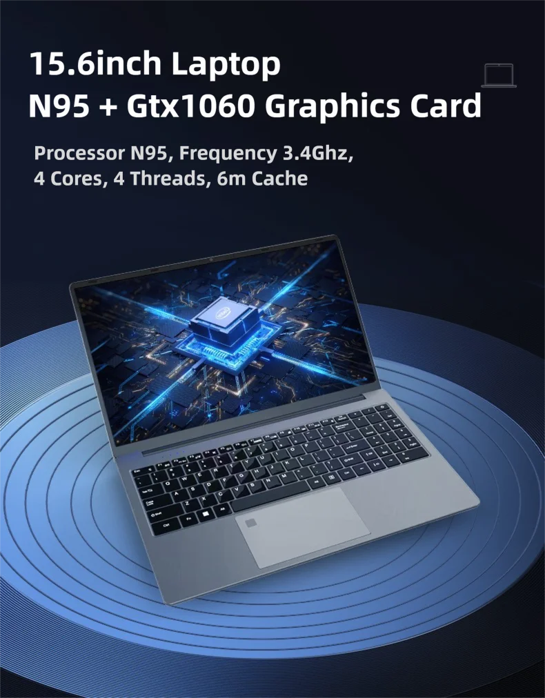 15.6" Slim Gaming Laptop Intel N95 GTX1060 Portable Laptops notbook computer pc Keyboard Backlight Windows 11 cheap price deals