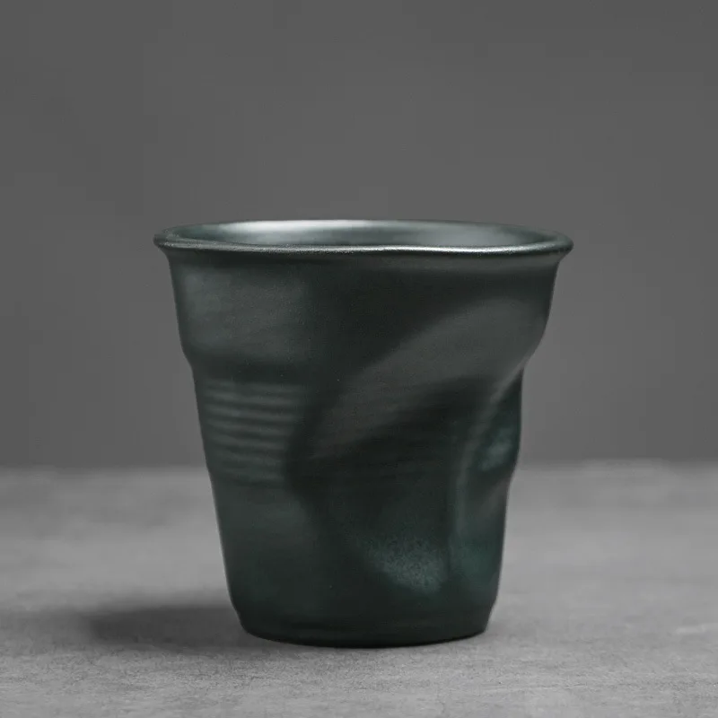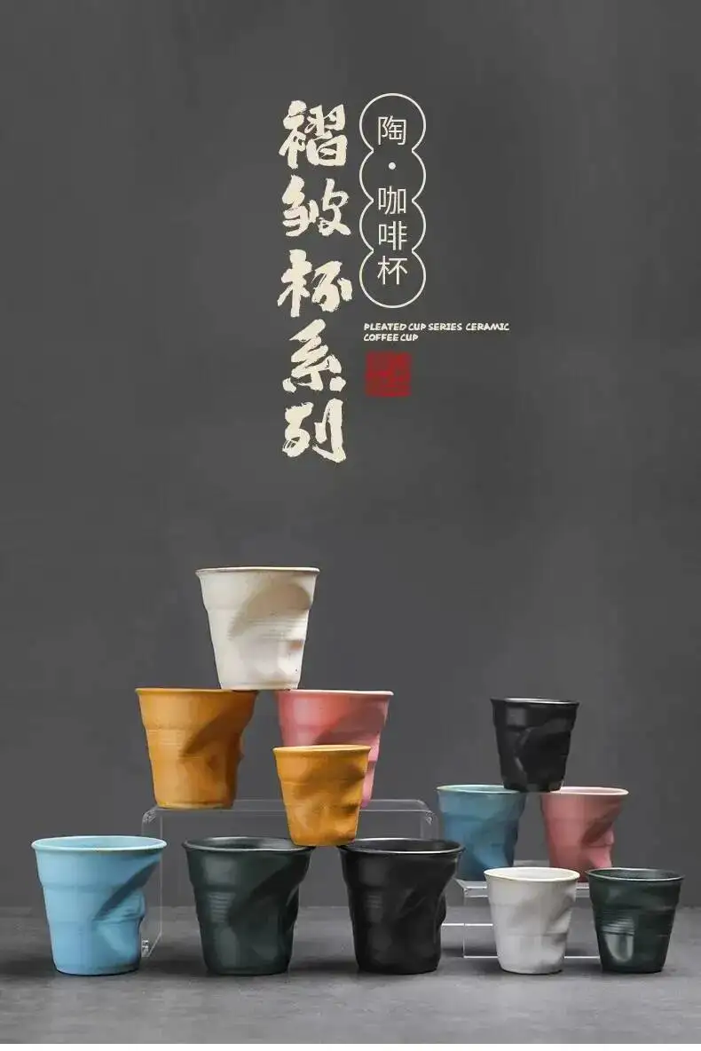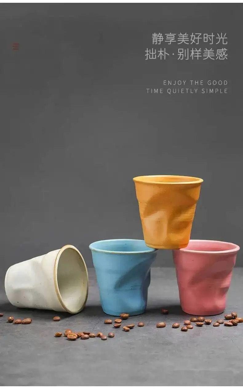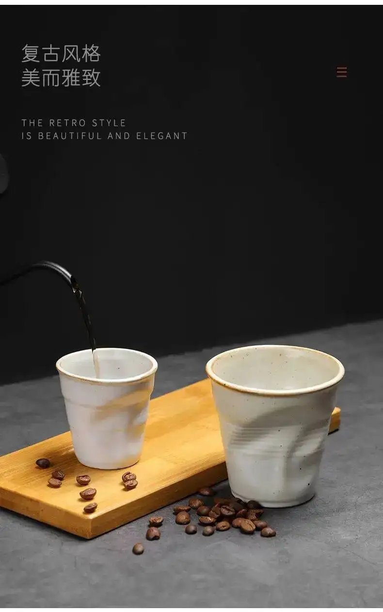 Coarse Pottery Coffee Cup Hand Kneaded Pleated Cup Ceramic Latte Cup Espresso Cup Afternoon Tea Cup Vintage Cup