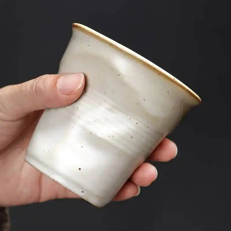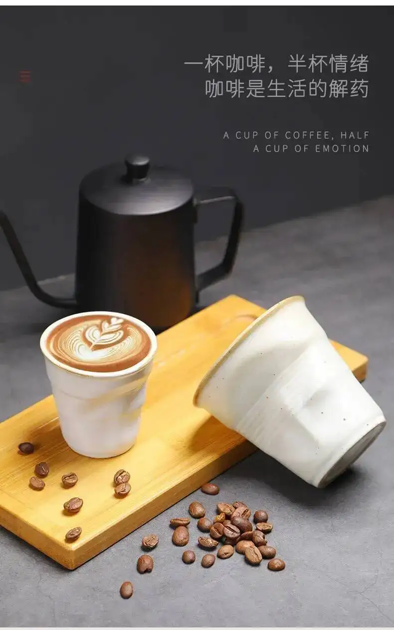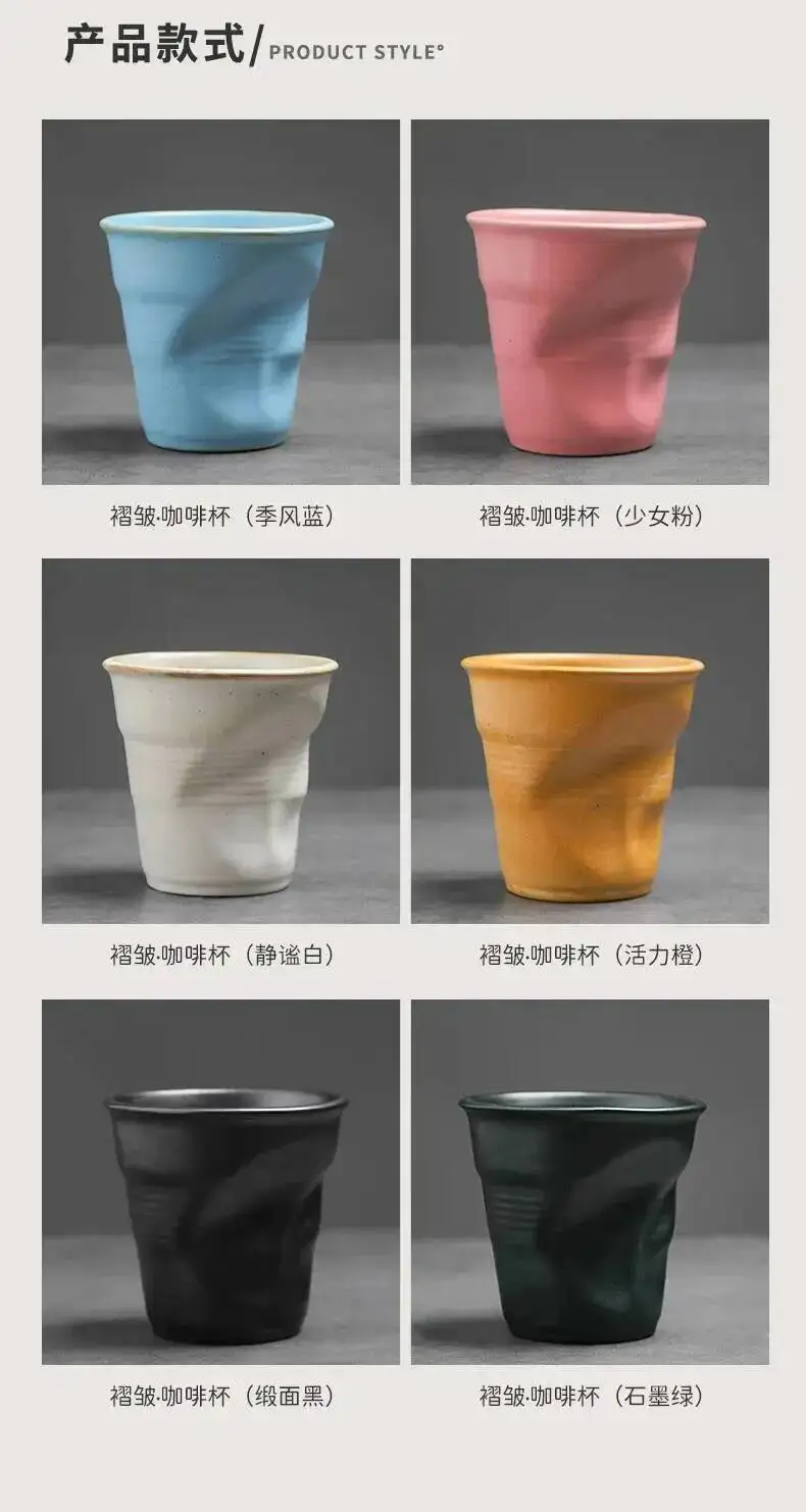 Home/Household Supplies/Coarse Pottery Coffee Cup Hand Kneaded Pleated Cup Ceramic Latte Cup Espresso Cup Afternoon Tea Cup Vintage Cup